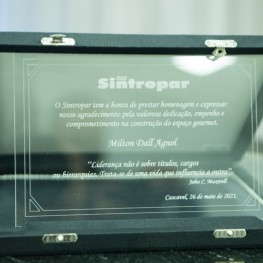 A entidade também promoveu a inauguração do Espaço Gourmet, um antigo desejo da diretoria antecessora, e prestou uma homenagem a Milton Dall Agnol, atual diretor financeiro da entidade, que sempre acreditou no lançamento dessa área, que visa ser um ambiente para eventos e recreação do SINTROPAR.